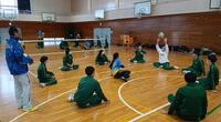 毎年恒例の体験授業として、今年も千葉パイレーツの指導のもと、シッティングバレーボールの体験をしました。