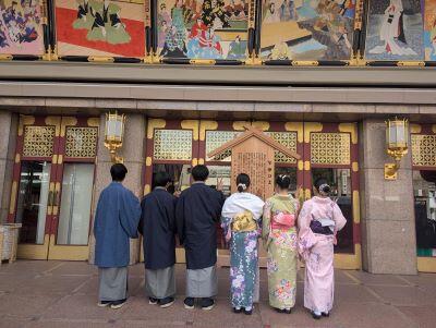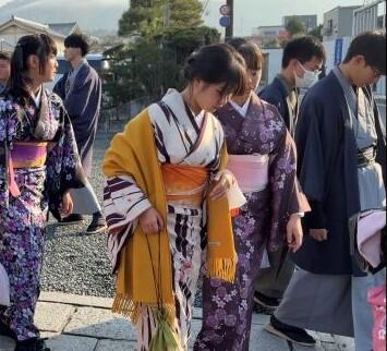 昨日に引き続き、各ルートの【班別研修】を行いました。クラスによっては、着物の着付けをしていただいて京都散策に出たところもあり、生徒たちは思い思いに記念写真を撮っていたようです。