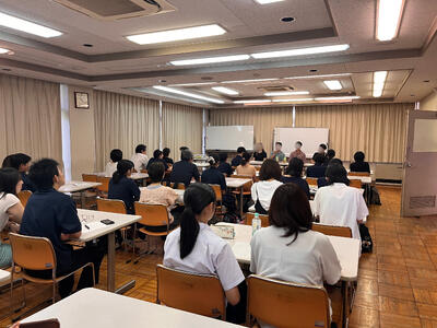 8月30日(土)、セミナーハウスにて「難関大ガイダンス及び先輩の体験談を聞こう!」が開催されました。予備校講師の方々をお招きし、1階では1年生、2階では2年生を対象に、難関大学を目指すための心構えや学習のポイントについて、具体的なアドバイスをいただきました。