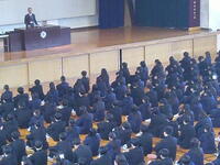 賞状伝達式の後、終業式が行われ、校歌斉唱に続く校長式辞では、今学期の反省・振り返りの中で、「幸運は準備された心に宿る」という言葉を話されました。また、3年生には目前に迫った大学入学共通テストに向けたエールが送られ、1・2年生には長期休暇の過ごし方についてもお話しいただきました。年末年始の慌ただしく短い期間ですが、有意義な休暇を過ごし、元気に3学期が迎えられること願っています。