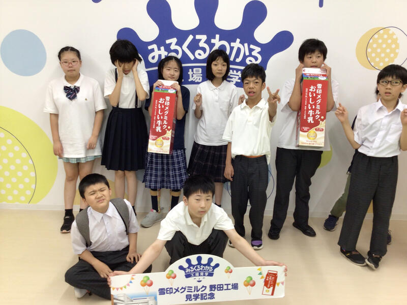 社会科「千葉県で作っているものを知ろう」を学習してきた中学部1年生は、実際にその様子を見てみようと、雪印メグミルク野田工場に出かけてきました。おいしい牛乳を試飲してから、いざ、製造ラインへ。目まぐるしく働く機械や次々と流れてくるたくさんの製品に圧倒される人、続出でした。飲料パックの工夫やコントロール室の役割も知ることができ、大満足の校外学習となりました。