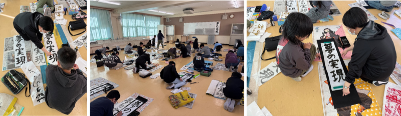 12月10日(水)、12日(金)の2日間にわたり、本校の書道教員が近隣の柏井小学校で「書き初め指導」を行いました。10日(水)は3年生が「友だち」、4年生が「美しい空」、12日(金)は5年生が「世界の国」、6年生が「夢の実現」という題目で、それぞれ書き初めに取り組みました。書道教員は、書き方の説明や道具の使い方、正しい書き方の姿勢などを丁寧に指導し、子どもたちは熱心に耳を傾けながら、意欲的に取り組んでいました。今後、子どもたちは冬休みの宿題として練習を重ね、1月に行われる席書大会に向けて準備を進めていく予定です。本校の教員も、授業を通じて「たくさん練習していくように」と声をかけながら、子どもたちを温かく応援しました。このように、本校の教育機能を地域のために役立てる機会をいただけたことを大変嬉しく思います。これからも地域との連携 を深め、教育活動を通じて貢献していきたいと考えています。