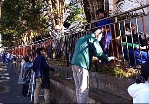 12月13日(土)に、学校のバス通り側のフェンスのペンキ塗りを行いました。例年は「PTAクリーンデー」の活動の一環で落ち葉掃きを行っていましたが、今年はみんなでペンキ塗りをしましょうと呼び掛けて、60名以上の有志の生徒と保護者、教員で作業を行いました。当日は大変寒い中でしたが、大勢で塗り始めるとあっという間にきれいに塗ることができました。まだ裏門側のフェンスは錆びてぼろぼろの状態ですが、また皆さんできれいにできると良いと思っています。作業に参加してくれた皆さん、どうもありがとうございました。