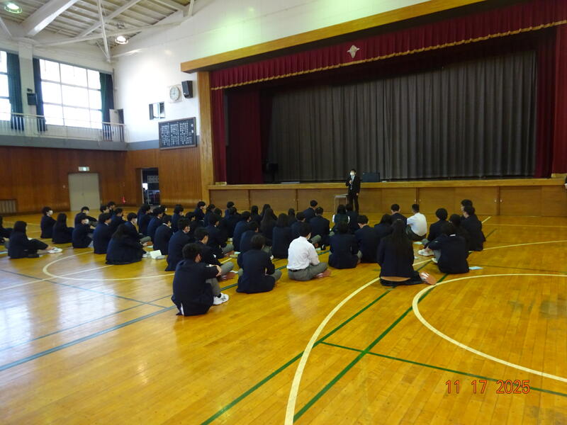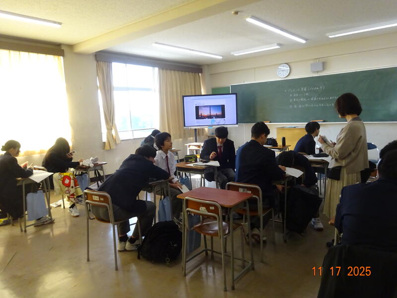 本日の授業風景です。2年生は明日から行う修学旅行の結団式を行いました。