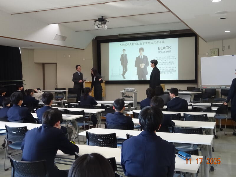 本日、3年沼高生対象に(株)コナカ我孫子店 大山プロデューサーをお迎えして「スーツ着こなし講座」を実施しました。