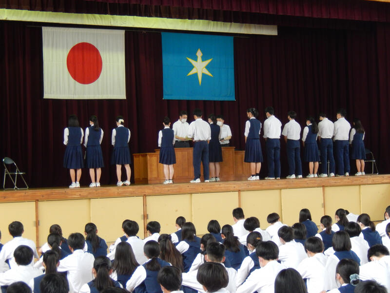英検で優秀な成績を収めた生徒、水道週間ポスターコンクールに入賞した生徒に続いて、