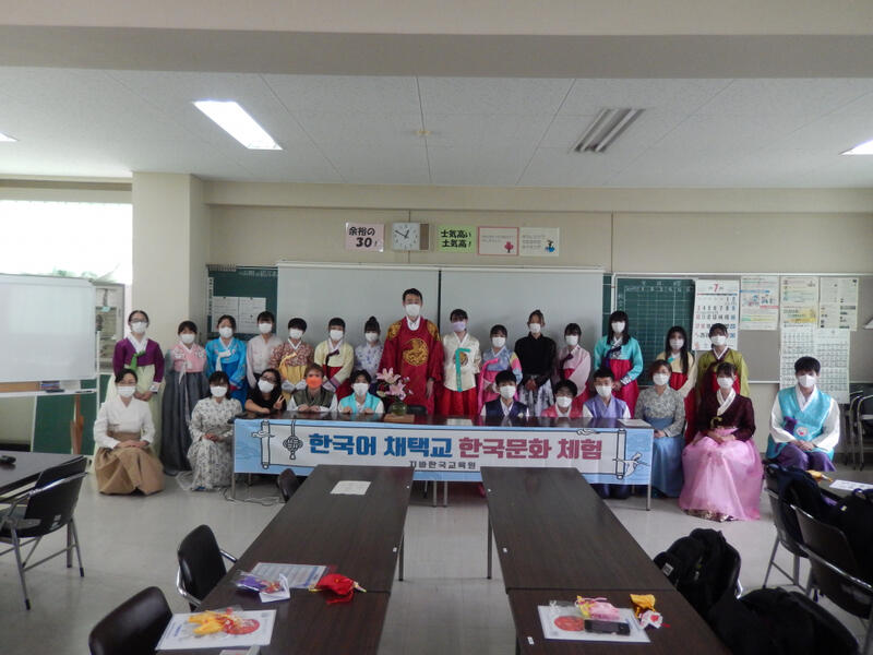 本校では、国際交流の取組の一環として、韓国語講座を実施しています。